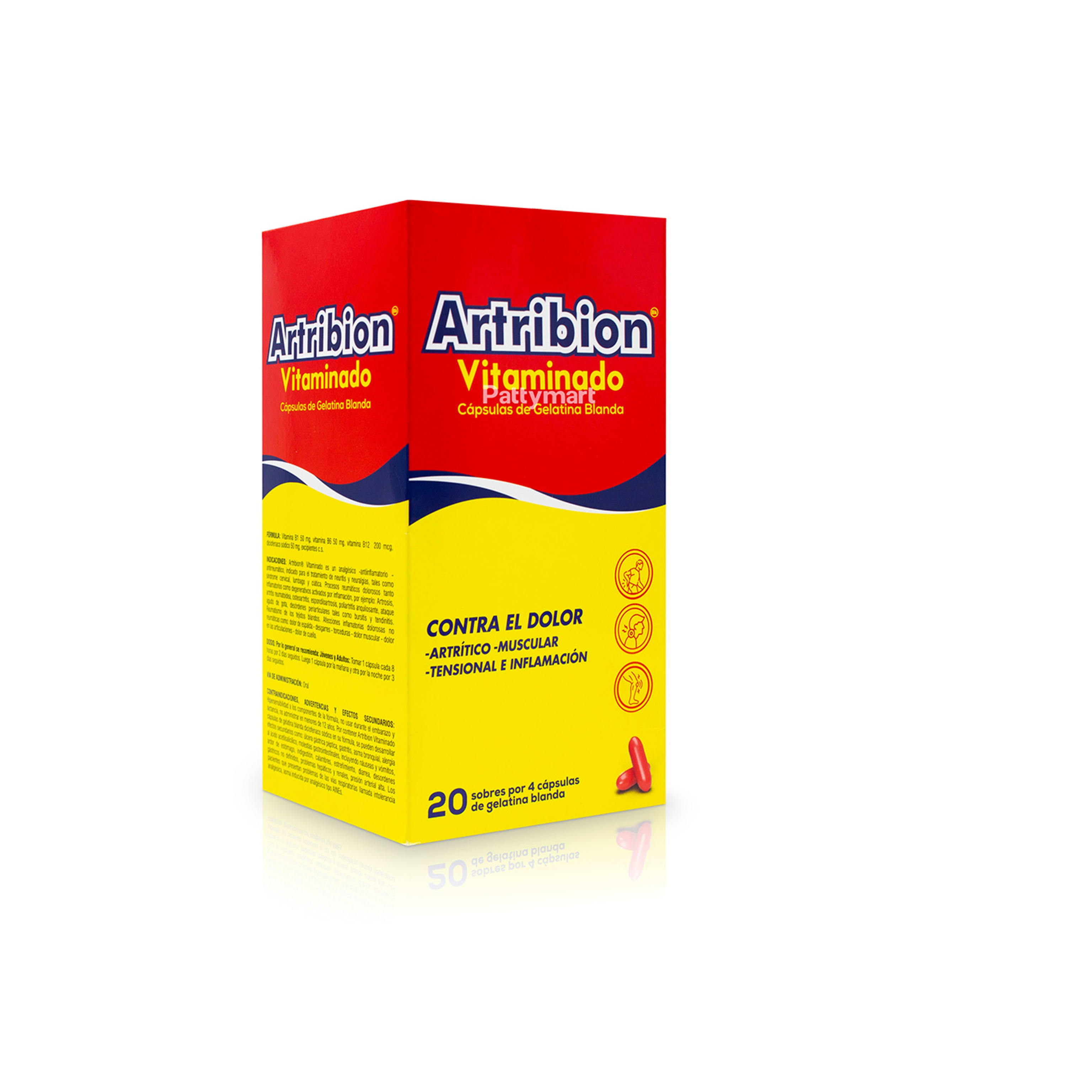 Artribion Vitaminado Capsules are indicated as an anti-inflammatory, analgesic, antirheumatic and antineuritic, for rheumatism, arthritis, inflammation, sciatica, neuralgia, back pain, and tears, sprains, spine pain, muscle pain, joint pain, neck pain.